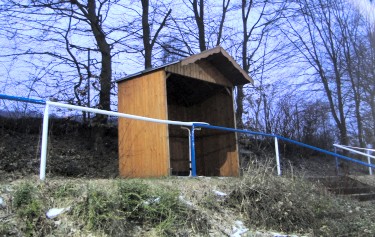Umkleiden von den Fußballern mit genutzt werden. Daneben steht das Vereinsheim der