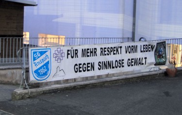 SG Anspach, und hier ist auch ein Transparent aufgehängt, auf der Leute, die nie auseinanderhalten