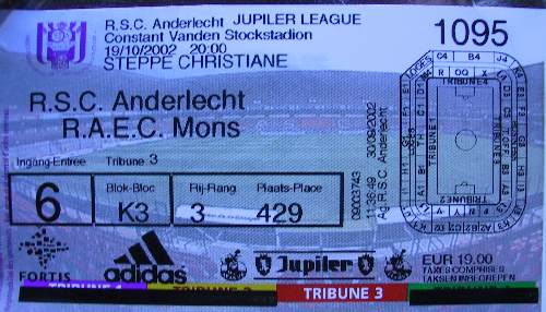 Benelux-Tour vom 18. bis 20. Oktober 2002 De Graafschap NEC Nijmegen 1:3 (0:0) RSC Anderlecht RAEC Mons 2:1 (0:0) F91 Dudelange CS Grevenmacher 2:0 (2:0) Drei Länder in drei Tagen was liegt da näher, als eine Tour durch die Benelux-Staaten zu machen? Unser Programm war schnell auf die Beine gestellt. Bei unserem monatlichen Stammtisch einigten sich Gernot, Thomas und ich, dass wir auf jeden Fall ein Heimspiel des RSC Anderlecht besuchen müssten. Gernot ist von Kindesbeinen auf Anhänger dieses Klubs und hat schon unzählige Heim- und Auswärtspartien von Sporting besucht, Thomas und ich hingegen fehlte das Constant Vanden Stock noch. An unserem gemeinsamen freien Wochenende stand das Heimspiel gegen den Aufsteiger RAEC Mons an, was mich zunächst nicht so begeisterte, da die Elf aus der Heimatstadt des Kinderschänders Dutroux noch nie erstklassig war und dementsprechend keine Tradition hat. Natürlich wäre mir ein Knaller gegen Club Brügge oder Standard lieber gewesen. Oder auch ein Derby gegen Antwerpen oder Mechelen. Aber Mons? Na ja, der starke Saisonauftakt des Neulings sollte mich später einigermaßen überzeugen. Die Partie war für Samstagabend, 20 Uhr, angesetzt. Also blieb das Freitagabendspiel in den Niederlanden und ein x-beliebiges Sonntagsspiel in Luxemburg. In Holland stand an besagtem Tag nur eine Partie auf dem Spielplan, und wir hatten Glück, dass es ausgerechnet die Begegnung zwischen De Graafschap und NEC Nijmegen war. Denn Doetinchem liegt unweit der deutschen Grenze und ersparte uns eine weite Fahrt ins Landesinnere. Außerdem hatte noch niemand von uns diesen Ground gemacht, was die Sache noch schmackhafter machte. Besonders reizvoll wurde es dann, als wir erfuhren, dass es sich bei dieser Partie um das Gelderland-Derby handelte. Wer kennt sich denn schon in der niederländischen Topographie so gut aus? Wir jedenfalls nicht. Nijmegen liegt knapp 50 km von Doetinchem entfernt, für entsprechend Stimmung sollte also gesorgt sein. Und wir wissen jetzt, woher der Gelderländer Bauernspeck kommt. Für Luxemburg hatten wir uns eigentlich die Partie Jeunesse Esch gegen Progres Niedercorn ausgeguckt, weil Jeunesse wohl so etwas wie das Bayern München Luxemburgs ist. Aber ein Blick auf die Tabelle und den Spielplan änderte unsere Pläne, denn ausgerechnet an diesem Sonntag stand das Spitzenspiel zwischen dem Tabellenführer und zuletzt dreifachen Meister F91 Düdelingen und dem Zweiten CS Grevenmacher an. Knapp drei Stunden Fahrt sind es von Mannheim nach Doetinchem. Und auf dem Treborgseweg, der direkt ins Zentrum der Stadt führt, sieht das geschulte Auge rechter Hand die Flutlichtmasten in den Himmel ragen. Also schnell abgebogen und die Karten geholt. "Deze wedstrijd uitverkocht" stand am Kassenhäuschen des Stadions, aber wir hatten glücklicherweise die Tickets schon vorbestellt. Das Gebiet, in dem das Stadion liegt, erinnert an Mönchengladbach-Eicken, vielleicht sogar noch schöner. Ein Einfamilienhäuschen reiht sich hier an das